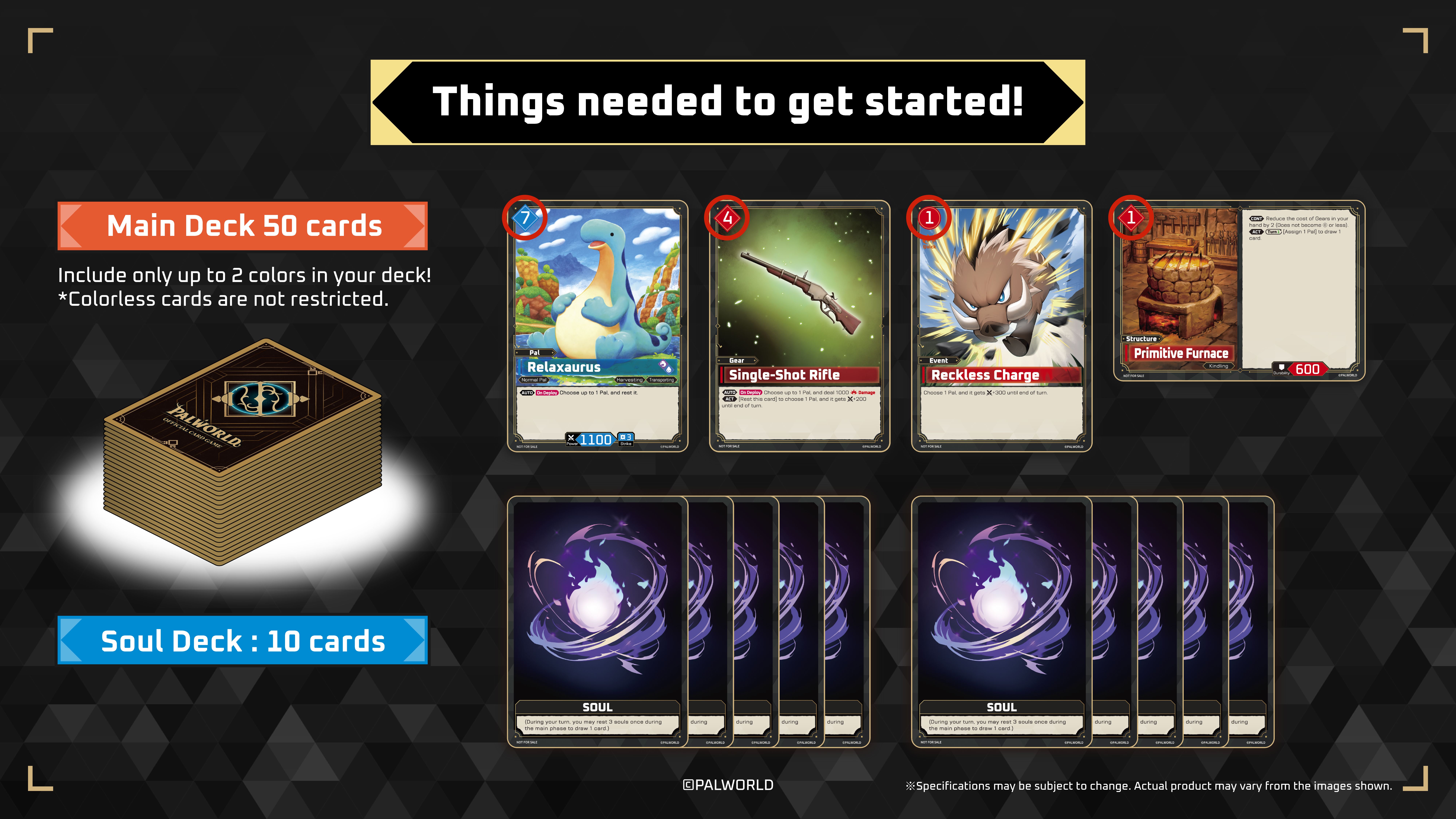 Alongside Pals, other elements of the game, such as Gears, Events, and Structures, will be brought to life as cards! Combine a variety of cards and recreate the Palworld experience in this trading card game that offers depth of strategy and freedom!