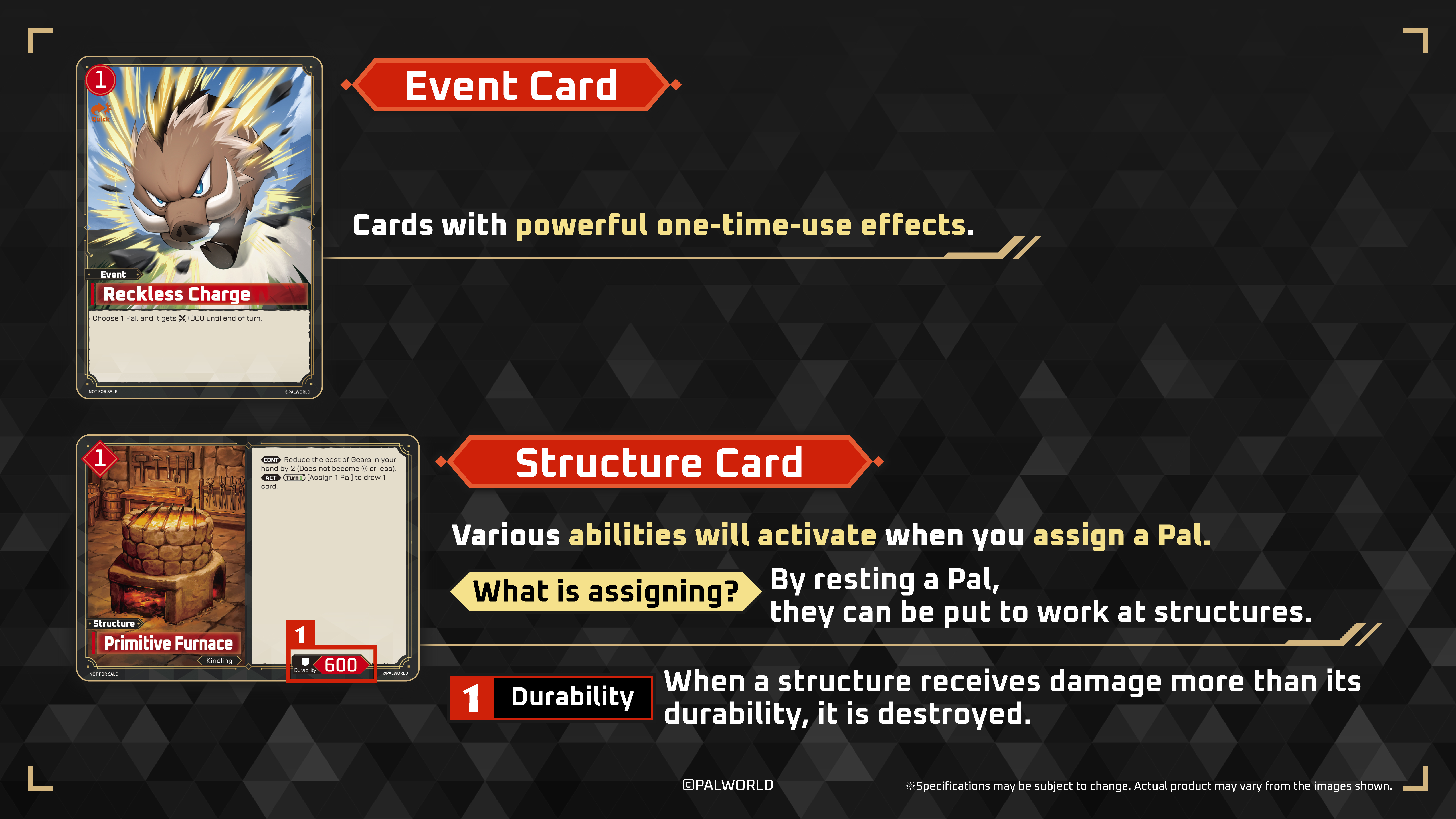 Other than Pal cards, Gear cards, Event cards, and Structure cards will all have brand-new illustrations drawn specifically for the game!